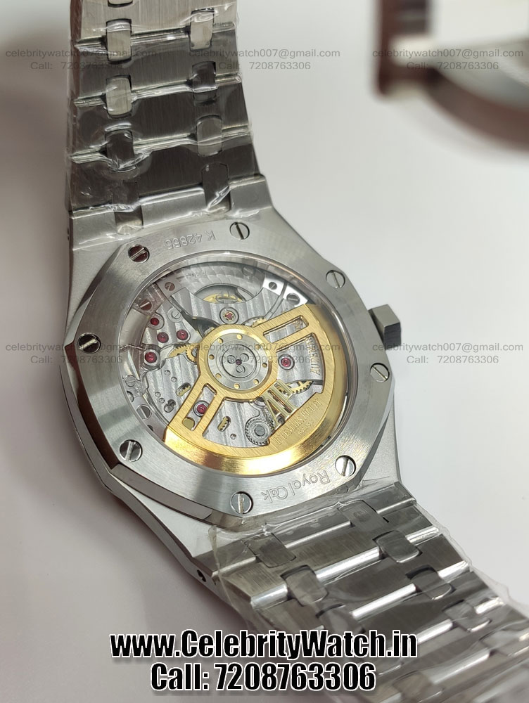 | MOVEMENT | – Exact 1:1 AP Calibre 4302 Swiss Clone Automatic Movement – Correct Serial Numbers and Identical AP Brand Markings on all small movement parts – Self Winding Automatic Movement – Central Movement Rotor in 18k Gold Plating, Unidirectional Winding – Smooth Sweeping Seconds Hand Motion, 28.800 VPH (4Hz) – All Parts Are Interchangeable With The Original |