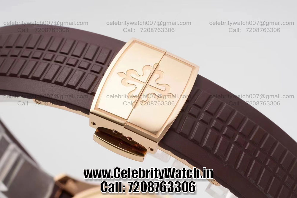 | BRACELET | – Brown rubber strap – 5 Layers real 18k Rose Gold plated Aquanaut fold-over clasp lock |